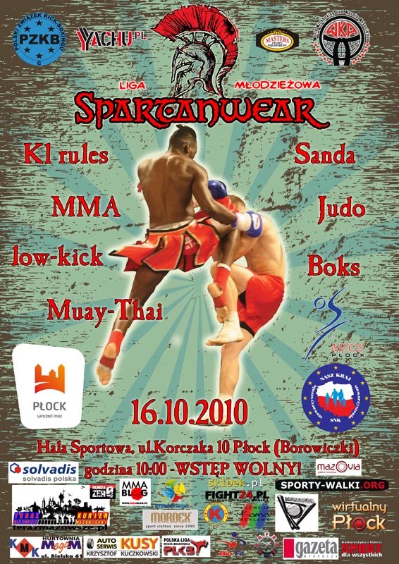 W sobotę, 16 października w Płocku odbyła się szósta edycja Młodzieżowej Ligi SPARTANWEAR. Do zawodów zgłosiło się 62 uczestników, którzy walczyli w trzech formułach: MMA, K-1 oraz low kick. Ta edycja ligi SPARTANWEAR wyróżniła się nie tylko dużą ilością startujących, ale również zaskakująco wysokim poziomem sportowym. Byliśmy świadkami przepiękne walk, w których o zwycięstwo zawodnicy walczyli do ostatnich sekund pojedynków.