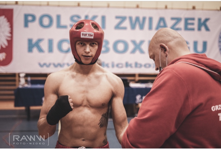Kamil Kur trenuje kickboxing pod okiem trenera Grzegorza Engela.